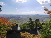 写真:ゆきたか |  写真:ゆきたか 二つの岩が並ぶ夫婦岩。幅約80センチの道があり、通り抜けることができる。 |  写真:ゆきたか 本殿そばの舞台からは、東近江市とその周辺を見渡すことができる。 |