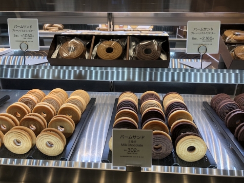 お土産のバームクーヘン以外にも、バームクーヘンを用いた創作スイーツもあります。「バームサンド/302円」や「バームサブレ/86円」「バームソフト/420円」なども人気です。