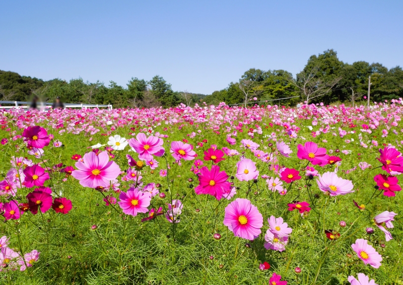 華やかなピンクが美しいコスモスも多数咲き、その数は100万本とも言われています。自然が多いエリアにあるので、写真もきれいに撮れそうですね。