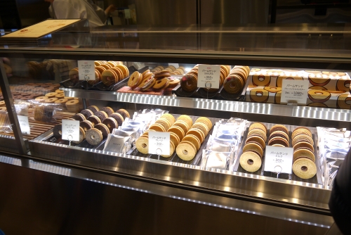 「たねや」のお菓子販売ブースや「クラブハリエ」のバームクーヘンの工場は店内1階にあり、出来立てを食べることができます。