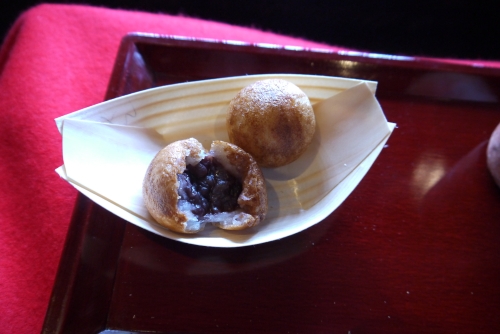 たこ焼きのような見た目の「たねや」の「つぶら餅」は、中にあんこが入った焼き菓子。外はカリカリ、中はもっちもちで、食感の対比が楽しい和菓子屋さんの和スイーツです。