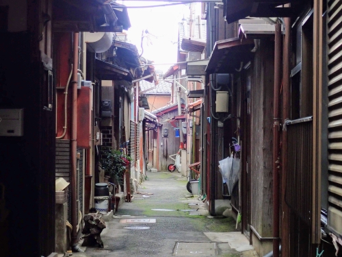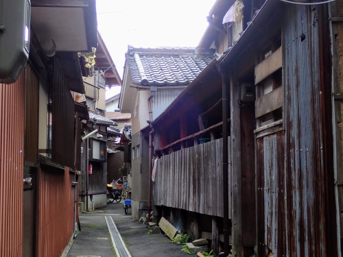 三輪自転車がメインの交通手段となっている細い路地。住宅は島の港周辺に集中しています。