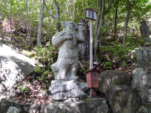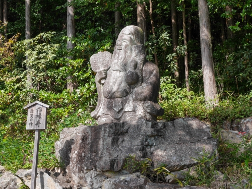 裏参道の石段を下りていると、七福神の石像が見られます。勝運の神の毘沙門天、除災の神の福禄寿など、7つの神様が斜面に安置されているので、足元に気を付けながらお祈りしてみてください。