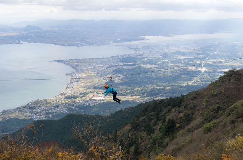 標高1,108mの打見山から1,174mの蓬莱山にかけて広がる高原リゾート。10位にランクインした「びわ湖テラス」もこのびわ湖バレイ内のスポットです。そのほか眼下に琵琶湖を見下ろしながら楽しめるジップラインやスカイウォーカーなどのアクティビティ、手作り遊具や絶景ブランコなどが人気!