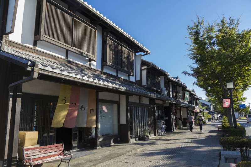 彦根城のお堀にかかる京橋からすぐの場所に伸びるストリート。白壁に黒格子という町屋風の建物が並んでおり、江戸時代の城下町を再現した街並みが続きます。食べ歩きグルメや和菓子店、レストランを楽しむのはもちろん、和雑貨のお店などでお土産を探すのにもおすすめです。