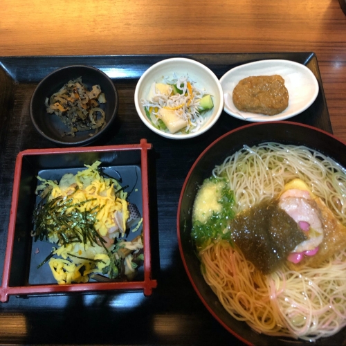 食べ歩きを楽しむなら、創業380年余りの郷土料理店「五志喜 本店」がおすすめ。鯛そうめん、鯛めし、じゃこてん、みかん寿司など、地元で獲れた食材を使って提供される郷土料理は、見た目にも美しく美味しいと評判です。また近くには、松山のソウルフードである鍋焼きうどんの名店「アサヒ」もありますので、あわせて立ち寄ってみて。
