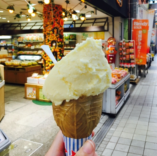 道後温泉駅からつづく商店街・ハイカラ通りには、『坊っちゃん』に登場するだんご屋のモデルとなった「つぼや菓子舗」をはじめ、道後プリンのお店、おしゃれなカフェなど、さまざまな食べ歩きのお店が並びます。愛媛ならではのみかんジェラートは特におすすめ!