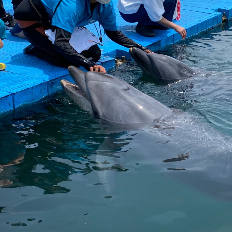 穏やかな瀬戸内海で、イルカの見学はもちろん、様々な体験プログラムを通してイルカとの触れ合いが楽しめます。小さな子供も参加できる「餌やり体験」や、ハンドサインを覚えてイルカと友達になれる「トレーナー体験」、そして一番人気が「ドルフィンスイム」!実際に海に入ってイルカと一緒に泳ぐことができます。