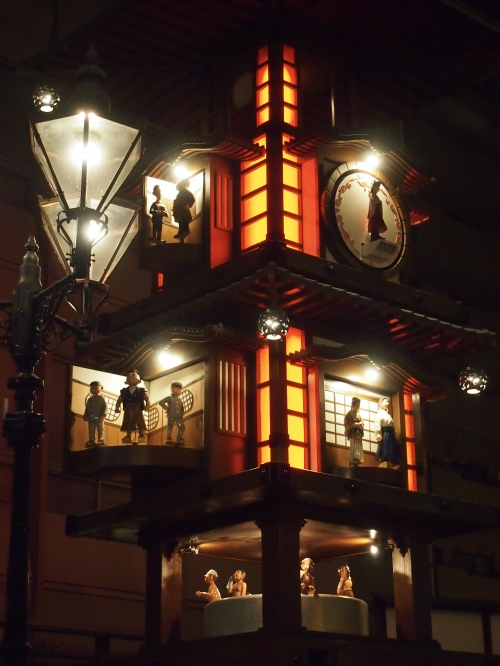 また、道後温泉駅前にある広場「放生園」では、1時間毎に坊ちゃんなどのキャラクターが登場する、愉快なからくり時計も必見です。