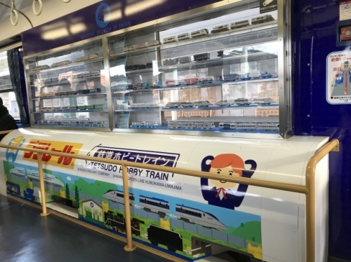 まるでテーマパークの乗り物みたいです。上の写真の「海洋堂ホビートレイン」「鉄道ホビートレイン」に加えて、トロッコ列車の「しまんトロッコ」が3兄弟となっています。