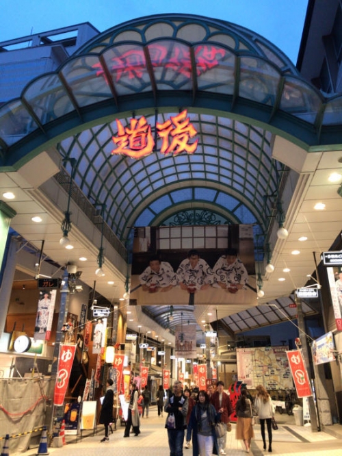 温泉街にある「ハイカラ通り」と呼ばれるアーケードもレトロな雰囲気満載。道後名物「坊ちゃん団子」も食べ歩きできます。