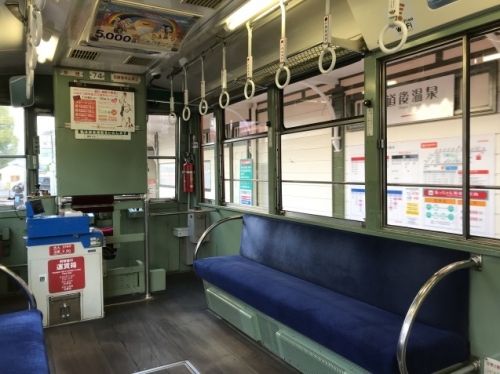 古いタイプの路面電車に乗れたらラッキーで、車内も昭和レトロな雰囲気で可愛いです。