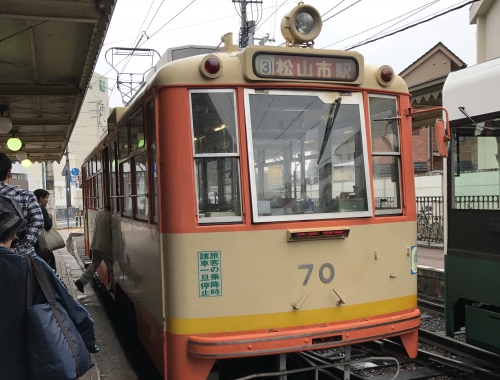 松山タウンには路面電車が走っており、道後温泉最寄りの道後温泉駅まで乗ることができます。「坊ちゃん列車」と呼ばれる蒸気機関車を復元した列車も走っていますが、通常の路面電車も風情たっぷり。