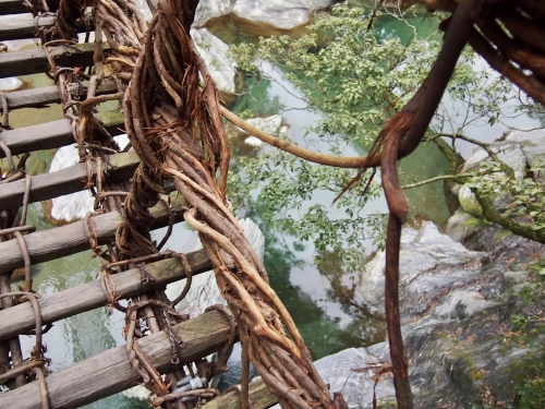 平家の落人が追っ手から逃げる際、すぐに切り落とせるようにカズラで橋を架けたと言われています。こちらのかずら橋は重要有形民俗文化財に登録されています。