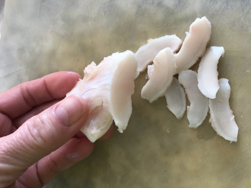 また、火を通すと、手で裂けるくらい柔らかいマンボウ。繊維に沿って裂いて食べるのも良いですが、繊維に垂直に包丁を入れる方が歯応えが柔らかくなります。