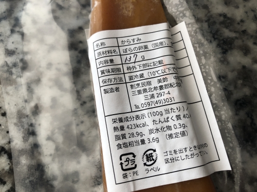 また、本格的なからすみは、地元の 「割烹の宿 美鈴」のご主人が自ら仕込んでいる渾身の自家製からすみ。閑散期にご主人が集中して仕込むそうです。1本で10,000円近く。
