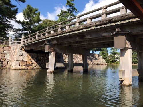 千鳥が羽を広げたように見える三角形が特徴の「入母屋破風」という造りは、桃山時代特有の建築様式で、松江城は別名「千鳥城」と呼ばれています。
