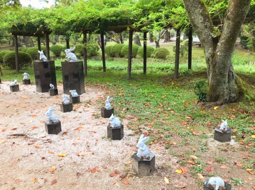 境内のあちこちに可愛い「うさぎ」がいます。出雲に古くから伝わる神話「因幡の白兎(いなばのしろうさぎ)」に因んで兎像が置かれており、なんと現在46羽もいるとのこと。ぜひ探してみて下さいね。