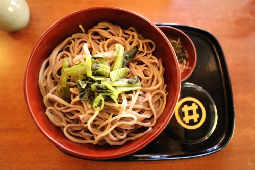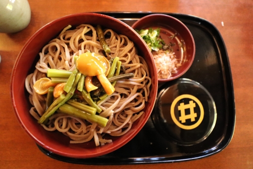 筆者は、五色割子そば(1,350円)を頂きました。五色とは薬味を指します。葉わさび、なめこ、山菜、うずらの卵、大根おろしの五種類を楽しめます。お椀のフタを開けると、次々と新しい薬味が出てくるため、食べることが楽しくなること間違いなしです。
