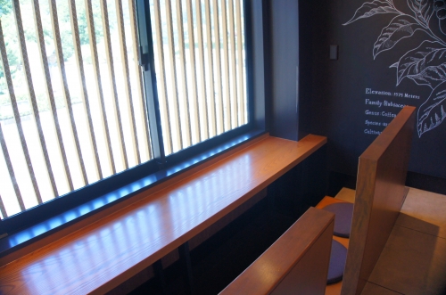 オーダーをする1階部分では、コーヒー豆のボトルに出雲大社の鳥居や八雲のイラストなどが描かれていたり、