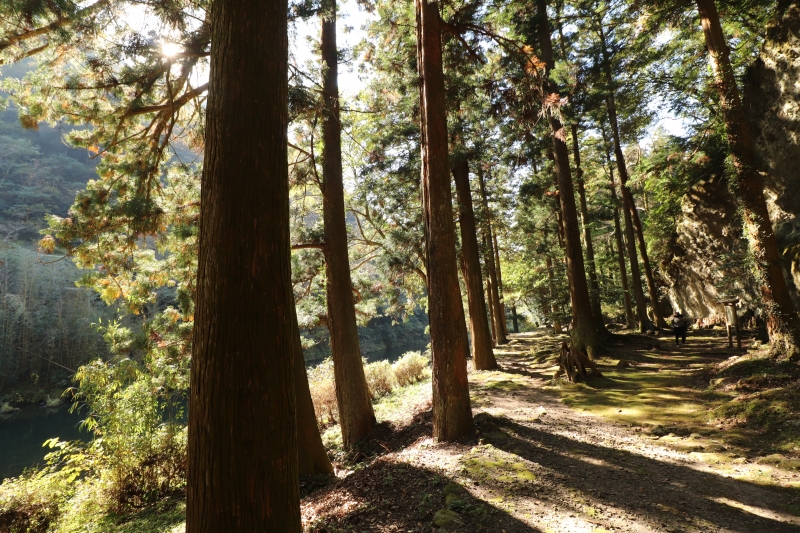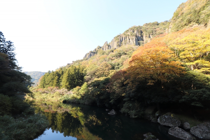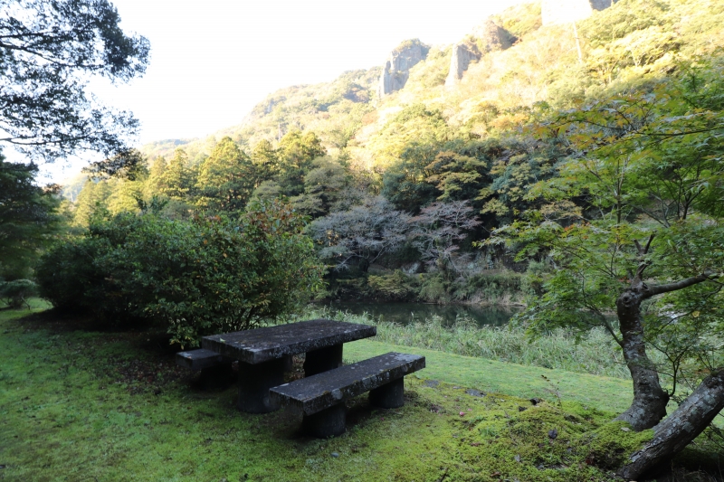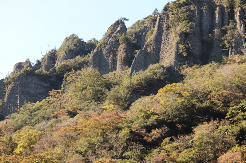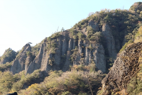 ハイキングコース後半に位置する絶景のお宿「御所覧場(ごしょらんば)」付近も奇岩群のビューポイントとしておすすめです。川を挟んだ向かい側に、岸壁が綺麗に見えます。