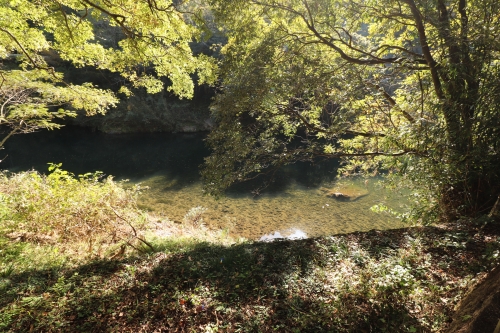 この川に生息する魚のうち最も有名なのはアユだそうです。アユは10月頃に、立久恵峡あたりから下流にかけて浅瀬の小石のなかに産卵し、ふ化した稚魚は海へと下ります。