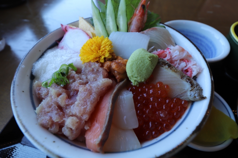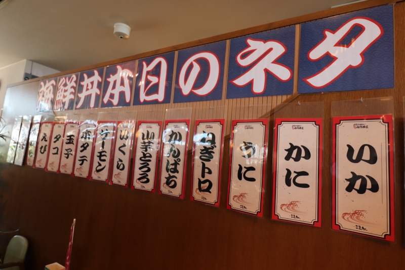 道の駅内のお食事処「海鮮丼屋ごゑん」では、名物の海鮮丼(1,650円/1杯)を頂くことができます。日本海の食材にこだわったという贅沢な一杯です。ネタは日々変わるそうで、当日のネタは店内で紹介されています。