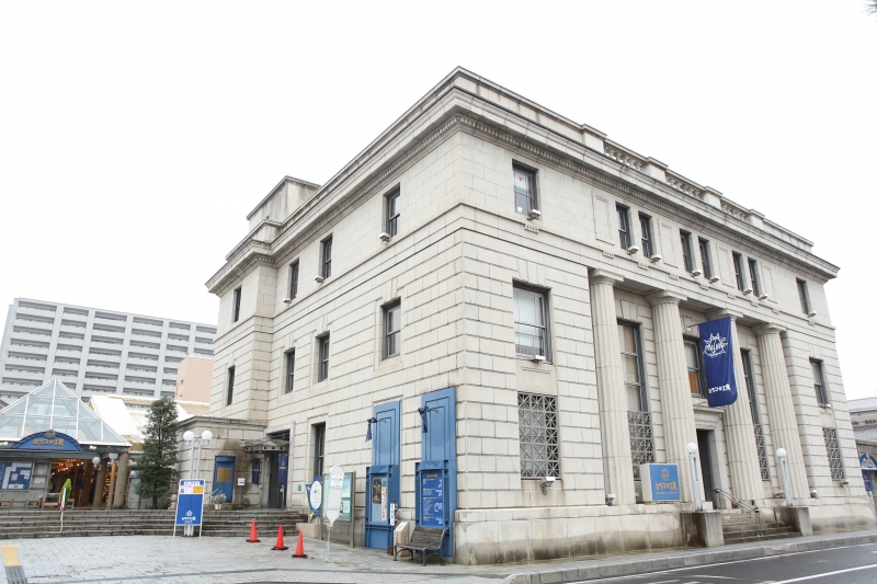 昭和13年に建てられた「旧日本銀行松江支店」を、当時のままの部分も残しつつ修復した、レトロモダンな建物。館内には15ほどの店舗がはいっており、和菓子づくりやアクセサリーづくりなどの体験ができます。また一緒に写真を撮ると幸せになれる・・・かもしれない「ピンクの幸運のポスト」が設置されています。