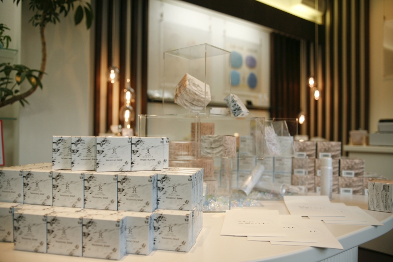 ”美肌の湯”で知られる玉造温泉水を配合した、オリジナルのスキンケアコスメを販売しています。玉造温泉水は、肌の水分量が増える、キメが整うなどの美肌作用があると言われ、自分用にはもちろんお土産にもおすすめ。ふわふわの泡が肌をやさしく包み込む「姫ラボ石鹸」が人気。