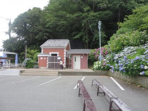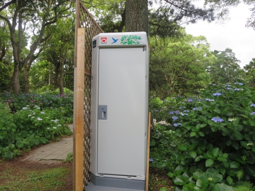 あじさい公園バス停の近くと、開国広場の駐車場に男女及び身障者用のお手洗いがあります。