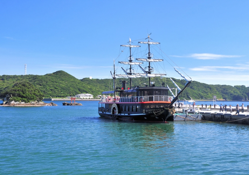 幕末開港の舞台となった「下田港」を、遊覧船 として復活した、ペリー提督が搭乗していたことで有名な黒船「サスケハナ」で一周します。乗船時間は約20分。