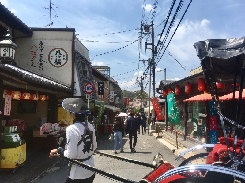 哲学の道から銀閣寺へと続く参道へ。京都のお土産屋さんが道の両脇に並んでいます。