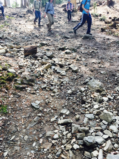 ガレ場を登り切るとお地蔵さまに出会います。ここで、ちょうど道のりの半分を歩いたことになります。
