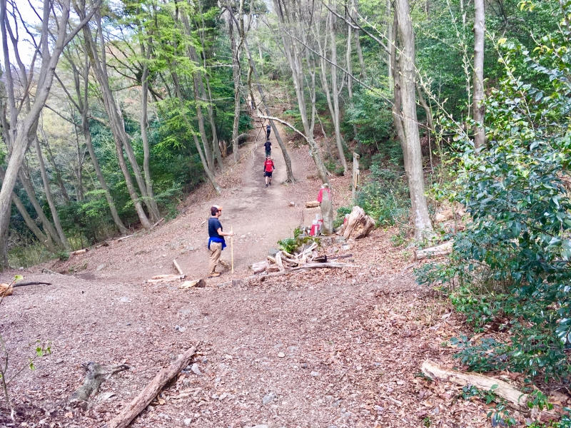 お地蔵さんのところで道が合流します。ここから先は、来たときに歩いた道と同じです。