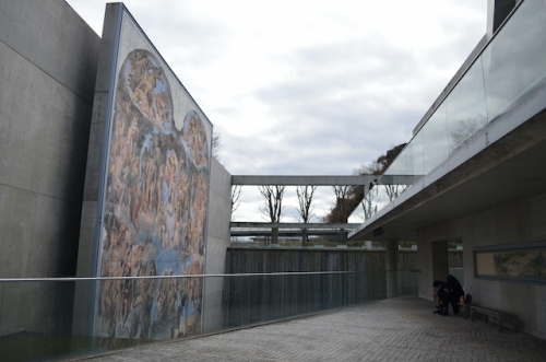 展示施設の構造上、窓から人物を覗きこむような格好の鑑賞となるので、絵画を真正面から鑑賞するのとは違った体験となります。陶板名画の庭ならではの体験と言えるでしょう。