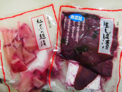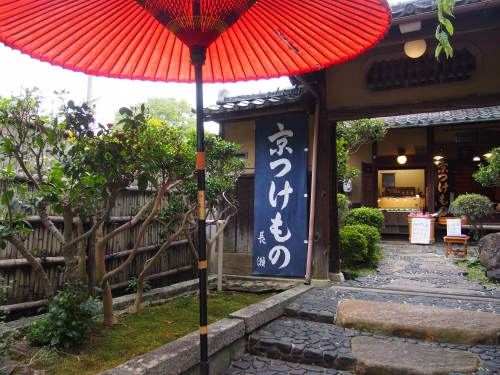無鄰菴と道一本隔てたところにある、京漬物のお店「長瀬」さんです。京都の伝統漬け物「柴漬け」を始め、ちりめん山椒などいろいろ。季節によって出てくる漬け物が違います。一般的に近所のお店で見る柴漬けはキュウリがほとんどですが、元々柴漬けといえばナスの方がメジャーだったそうです。
