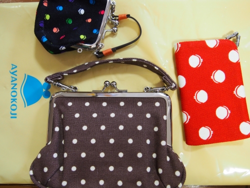 がま口の「AYANOKOJI」さんです。こちらは全国に出店されていますが、こちら京都岡崎店が本店。定番のがま口模様のがま口が良い味を出しています。カードケースも、がま口模様です。