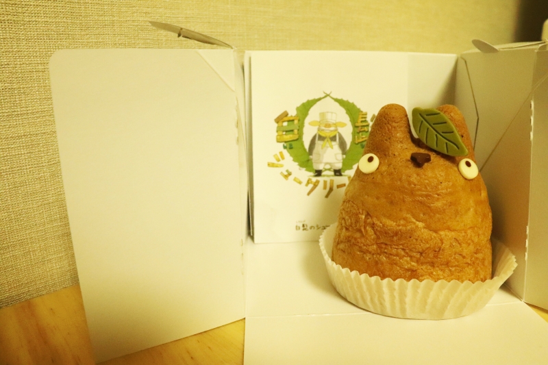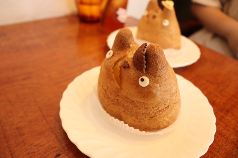 食後には(筆者は事前に予約しておいた)「トトロのシュークリーム」を頂きました。シュークリームは大ぶりで食べ応えがありますが、シュー皮もクリームも甘さ控えめで、全体的に優しい味となっています。普段甘いものを召し上がらない方でもチャレンジしやすい口当たりです。クリームがトトロの胴体にたっぷり詰まっているので、どこからかじっても外れがありません。