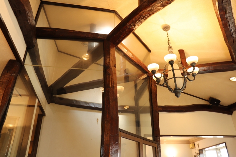 カフェはまるで秘密基地ような雰囲気で、落ち着く空間となっています。天井は高く、木とガラスのバランスがお洒落です。窓際からは優しい光が差し込み、お天気のよい日には日向ぼっこをしているような気分にさせてくれます。
