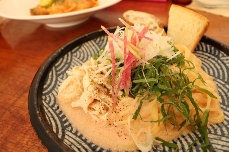 カフェメニューで強くおすすめしたいのが、パスタです。お店で手掛けた自家製の生麺は、無添加熟成パスタだそうで、もちもち感が病みつきになります。少し平たい麺はどこまでももっちり柔らかく、これぞ生パスタといった絶品を堪能することができます。ミニサラダもお野菜が新鮮でおすすめしたい一品です。