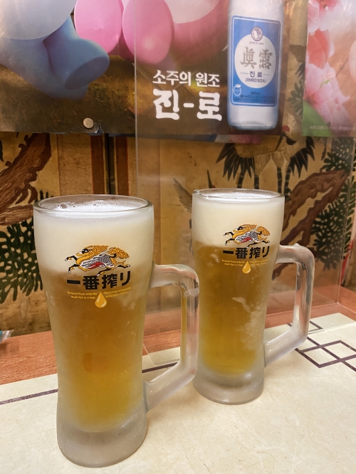 ドリンクは、生ビール(¥682)、ハイボール(¥550)から、女性に人気のストロベリーやマスカットなどのフルーツ味が沢山ある、韓国焼酎のチャミスル(¥1,320)や、マッコリ(どぶろく)まで、色々あるんです。