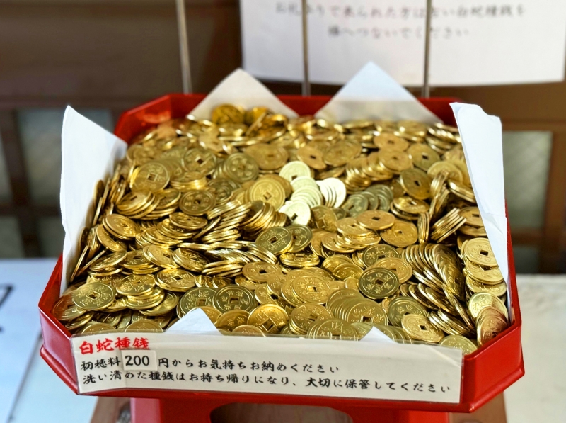 この日は、金運アップにつながる「白蛇種銭の銭回し」と「白蛇清水銭洗い」は、混雑回避の為お休みでした。初穂料をお納めし、洗い清められた「白蛇種銭」を財布に入れて持ち帰らさせていただきました。