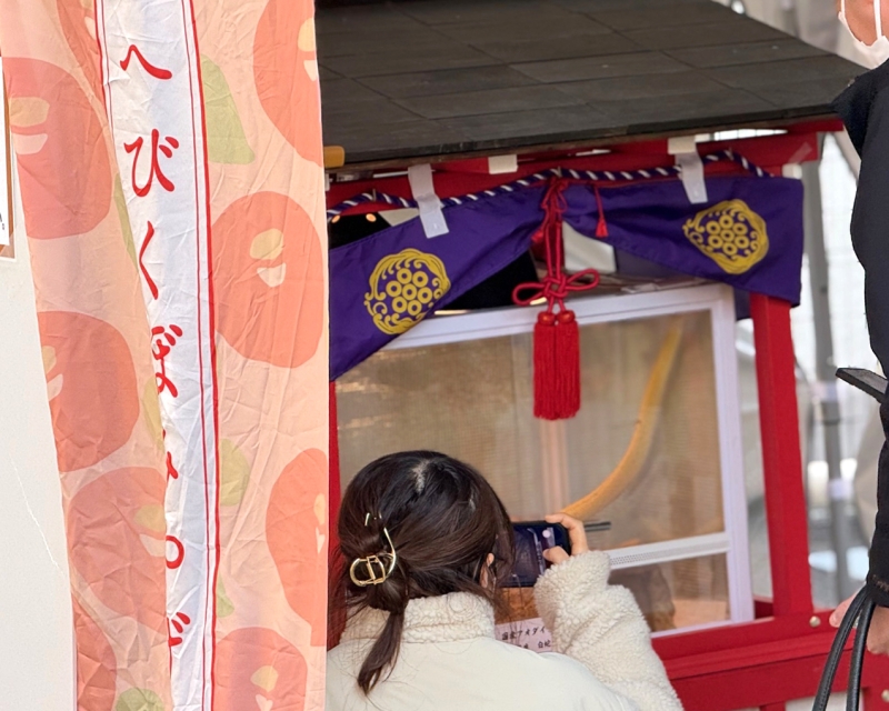 筆者の訪れた日は「巳の日」でしたが、「ミー君」「シーちゃん」は、戸越公園駅前南口商店会 ほのぼの広場に出張中でした。出張するのは、どちらか1匹のみ。神社内の混雑が予想される為、2025年の2月いっぱいは「巳の日」であってもこのような対応になるとの事。詳しくは、公式のエックスでご確認ください。
