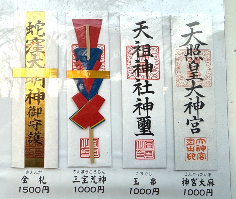 「蛇窪神社」には様々なお札、お守りなどがあります。