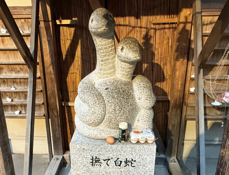 境内にはこの他にも、願い事を唱えながら撫でると叶えてくれると言われている「撫で白蛇」や、