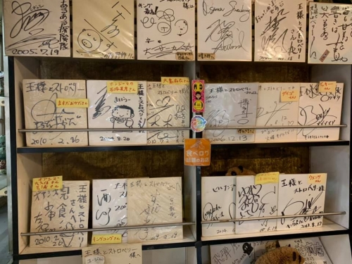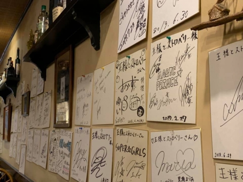店内に進んでいくと、すぐに目に入ってくるのが壁にずらりと並んだ著名人のサインです。