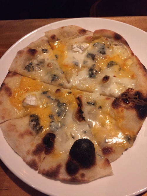 和牛モモ肉のタタキはボリュームたっぷり!付け合わせのレタスに巻いて食べましょう。4種のチーズピザは最初はそのまま、次は蜂蜜をかけて頂けば2種類の味が楽しめるので得した気分にさせてくれます。