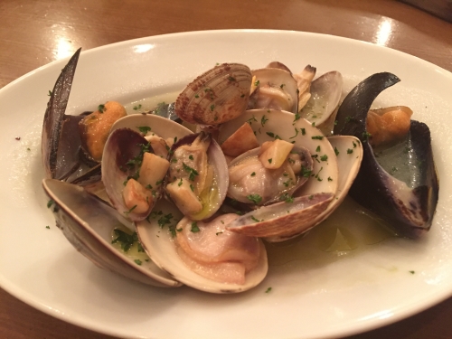 ニンニクの効いたつぶ貝ガーリックバター焼きやつぶ貝のアヒージョは熱々で出てくるので、火傷しないように気をつけましょう。また、一緒にバゲットを頼めばニンニクの効いたオリーブオイルに付けて頂くことができます。3種類の貝が入った貝のワイン蒸しは貝好きにはたまらない一品!