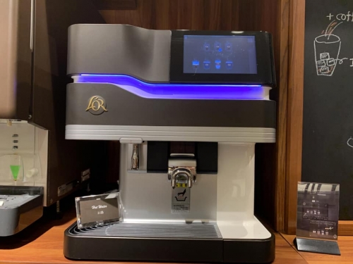 ドリンクコーナーの中央には、コーヒーやカフェラテ、カプチーノなどのカフェメニューが楽しめるマシンや種類豊富な紅茶が置いてあります。