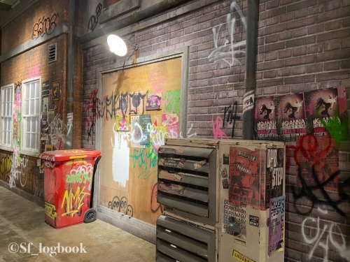 ストリートアートを再現した展示が魅力で、会場は映画の撮影セットのようなリアルな空間が広がっています。内装をテレビ局の美術チームが担当し、実際のストリートのような臨場感がある空間で作品を鑑賞できます。バンクシーの活動の3大地域と言われるヨーロッパ、アメリカ、そして中東の街並みの情景が感じられる展示です。